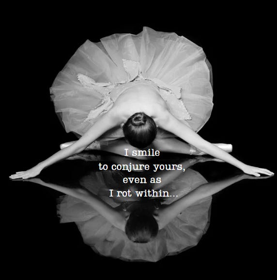 To Be Drained and Full All at once. I smile, I laugh, I sing, I dance— and then... you enter, a tornado without warning. Heavy. Urgent. Your agony pulls me in. I spin— trapped in your vortex of pain. My lungs fight for breath, each draw a gasp. Your home, my end. Your comfort, my undoing. I wasn’t made to carry two weights... Still, I do. Smiling— to conjure yours with mine, even as I rot within.